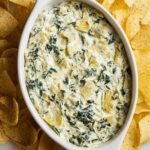A creamy and cheesy spinach artichoke dip that's perfect for parties and gatherings, baked to melty perfection and served warm with chips or bread.